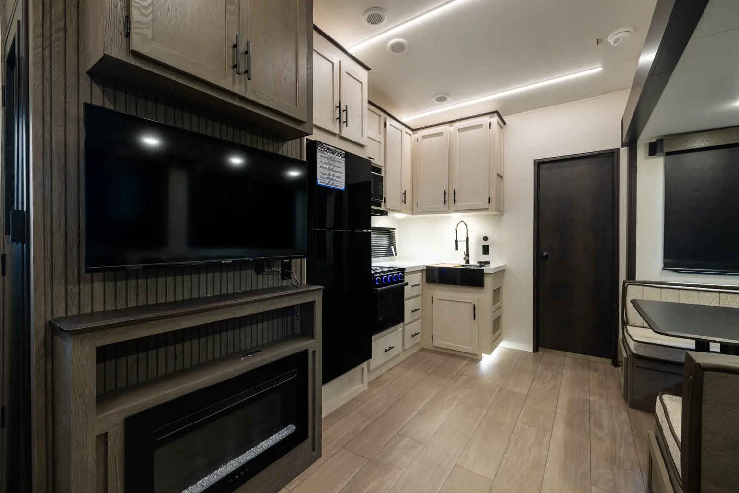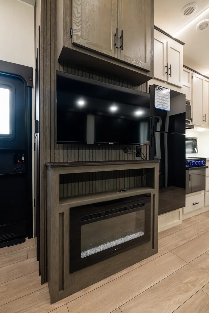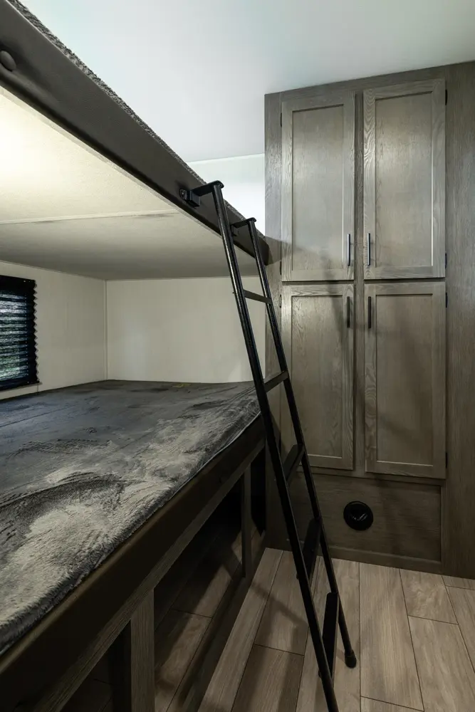 Our most popular multi-sleeper and family fun coach! Interior highlights include an oversized u-dinette seating surface for all the kids, dual pots and pans drawers, oversized double bunk beds, farm-style sink and 6’4” tall slide rooms, electric fireplace and an 80” queen size bed. Some exterior refinements include an oversized 20’ exterior awning, 15,000 BTU A/C, basement storage, Cherokee “Step Above” entry step, one-touch auto leveling and a deluxe outside kitchen for the camp chef!