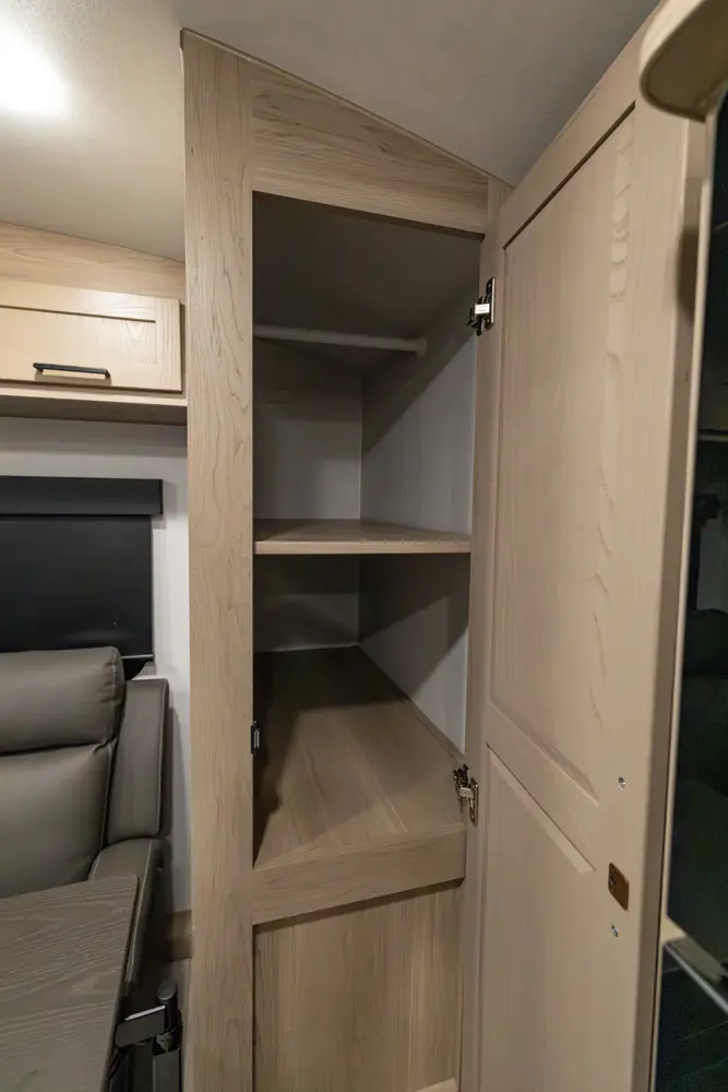 The E-Pro 19RL brings big comfort to a compact trailer. It’s the first E-Pro with theater seating, giving you a more relaxed and residential feel inside a lightweight camper. The smart rear living layout, efficient kitchen, and versatile sleeping space make it perfect for couples who want easy towing without sacrificing comfort or modern features on the road.