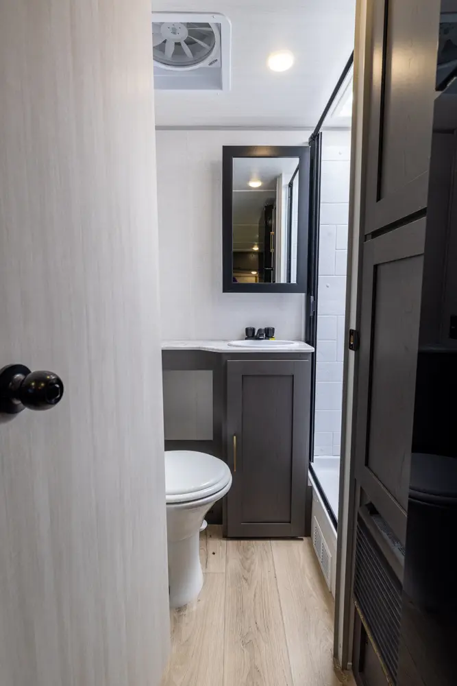 The 16MKD is a nimble, family-friendly travel trailer that delivers big comfort in a manageable 21'8" design. A front queen bed offers a cozy retreat for adults, while twin bunks are perfect for kids or guests. The full rear-corner bath adds privacy and convenience, making this trailer ideal for both quick getaways and extended adventures. Compact, capable, and thoughtfully designed — the 16MKD makes family travel effortless.