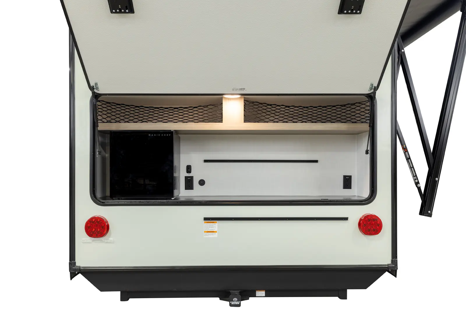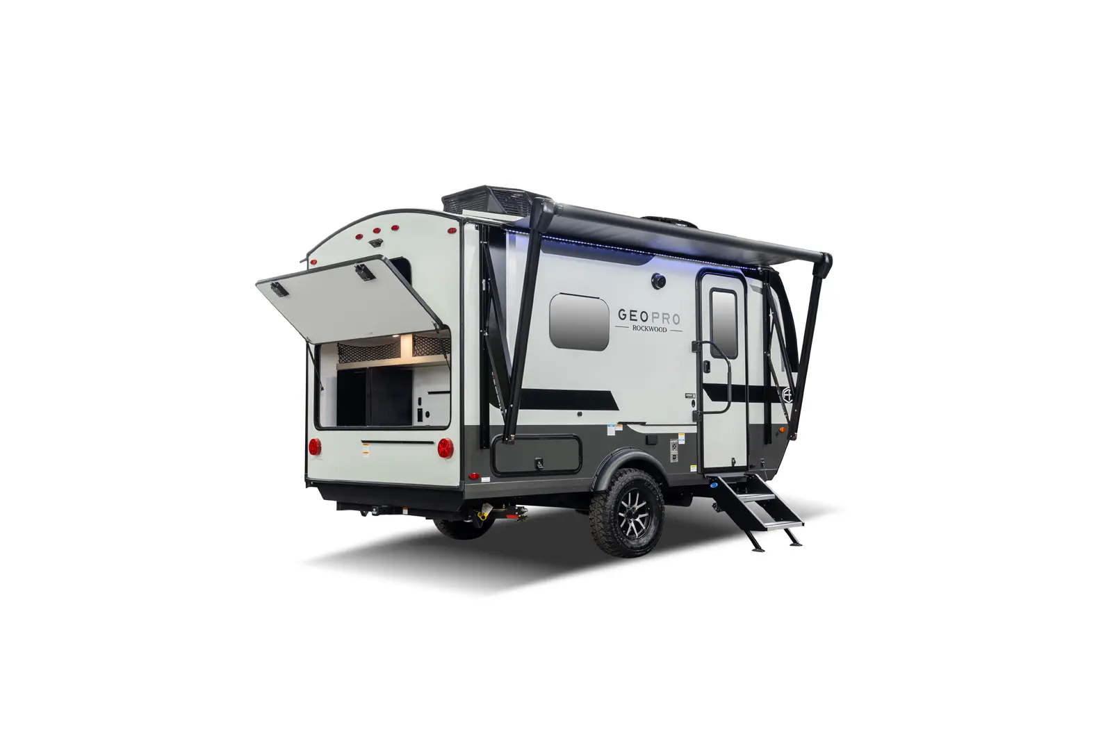 The 15RDG Offers a huge 80” by 54” U-shaped dinette that converts to a bed. A flip-up bunk that doubles as shelf storage when not in use. A thoughtful convection microwave, sink & stove top inside as well as a massive outdoor rear kitchen. With The convenience of a wet bath this model delivers comfort, versatility and fun wherever the road takes you.